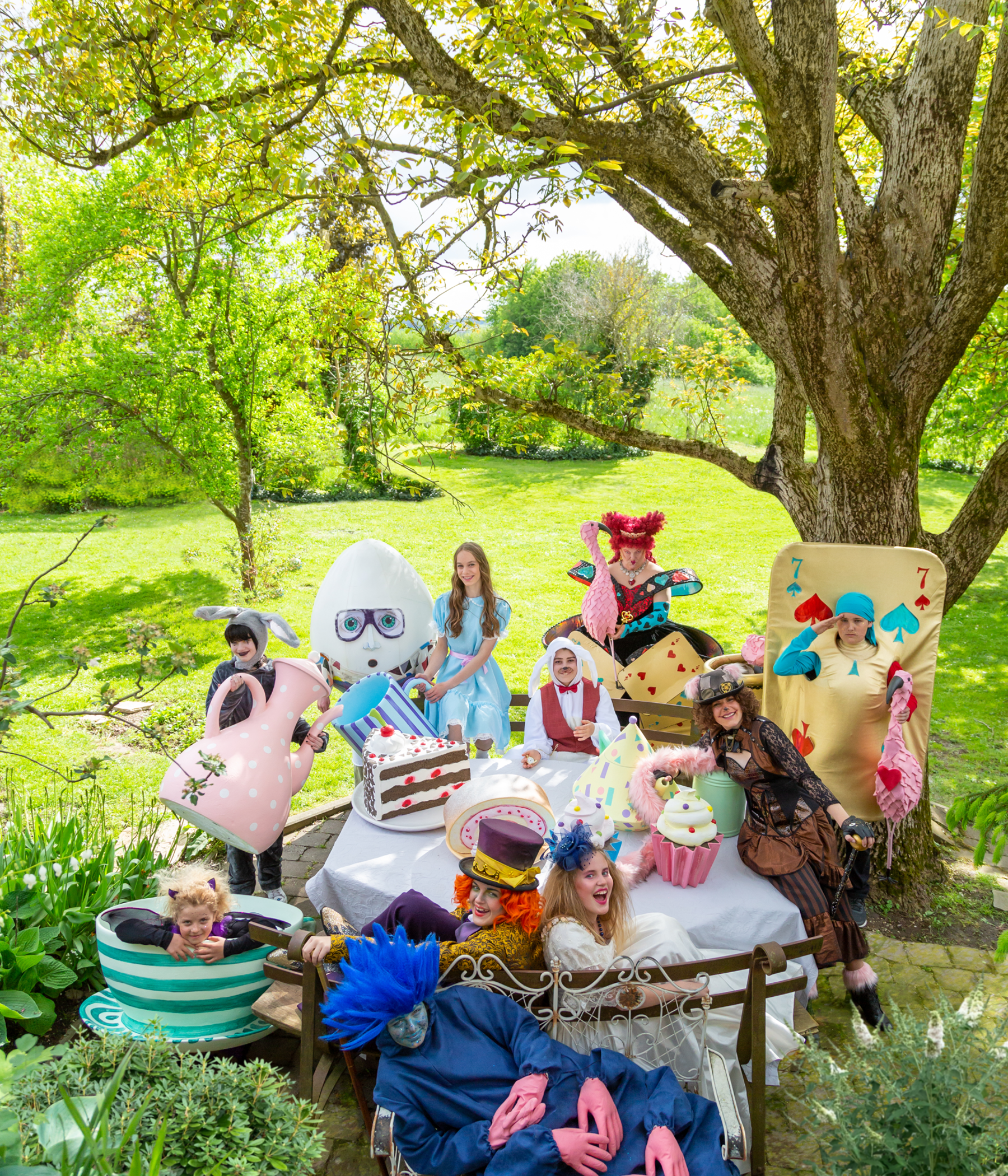 Im Wunderland ist alles auf magische Weise anders, als in der Welt der Erwachsenen. Alice begegnet einem verrückten Hutmacher, einer seltsamen Raupe, einem Ei, das auf einer Mauer lebt und vielen anderen schrägen Gestalten. Sie erhält verschlüsselte Botschaften von der Grinsekatze und ist zu Gast auf der seltsamsten Teeparty der Welt.