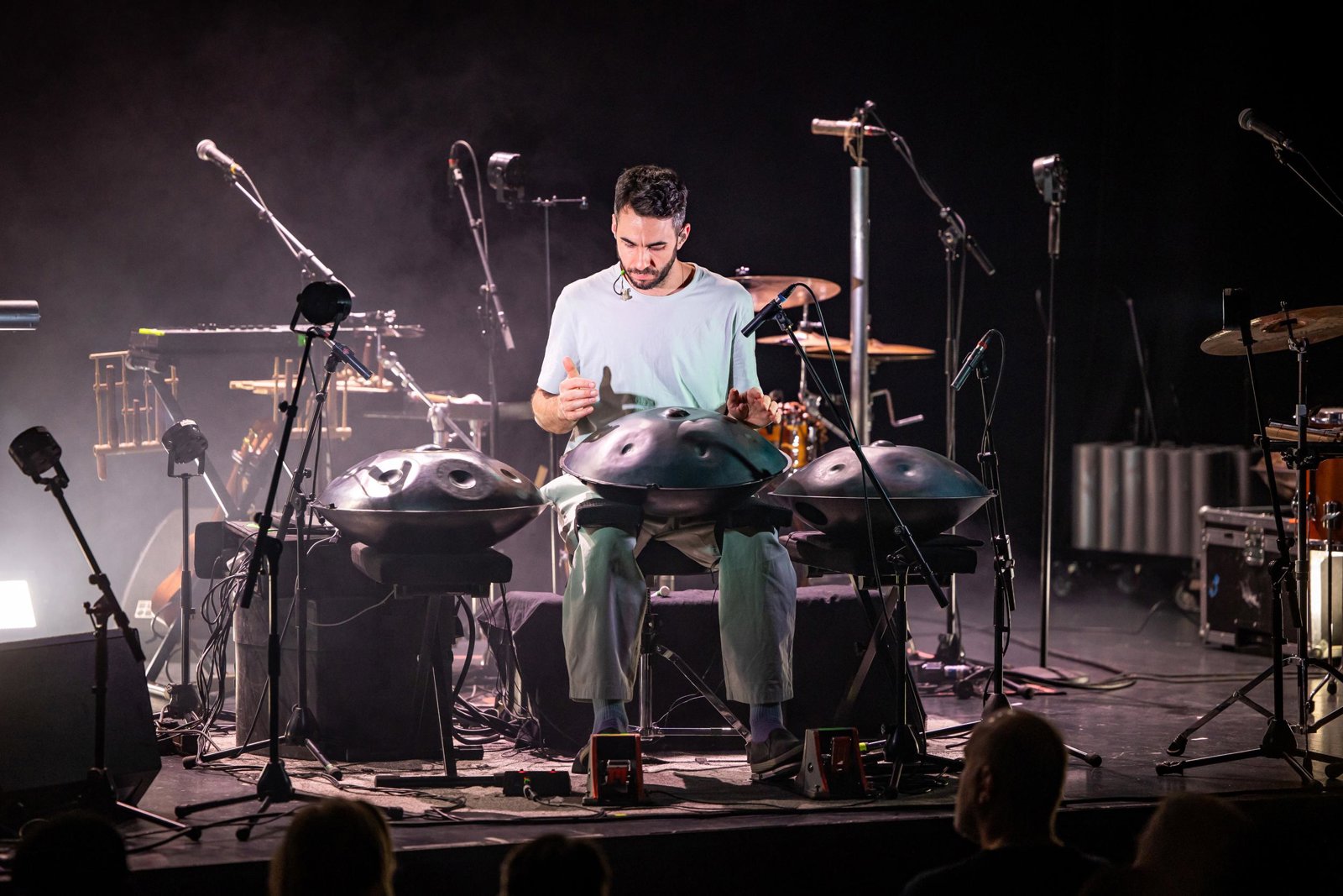 Manu Delagos virtuose Handpan- und Percussion-Sounds treffen auf ein einzigartiges Vokaltrio ("Mad about lemon"), umwoben von delikaten Electronics und Kontrabass.